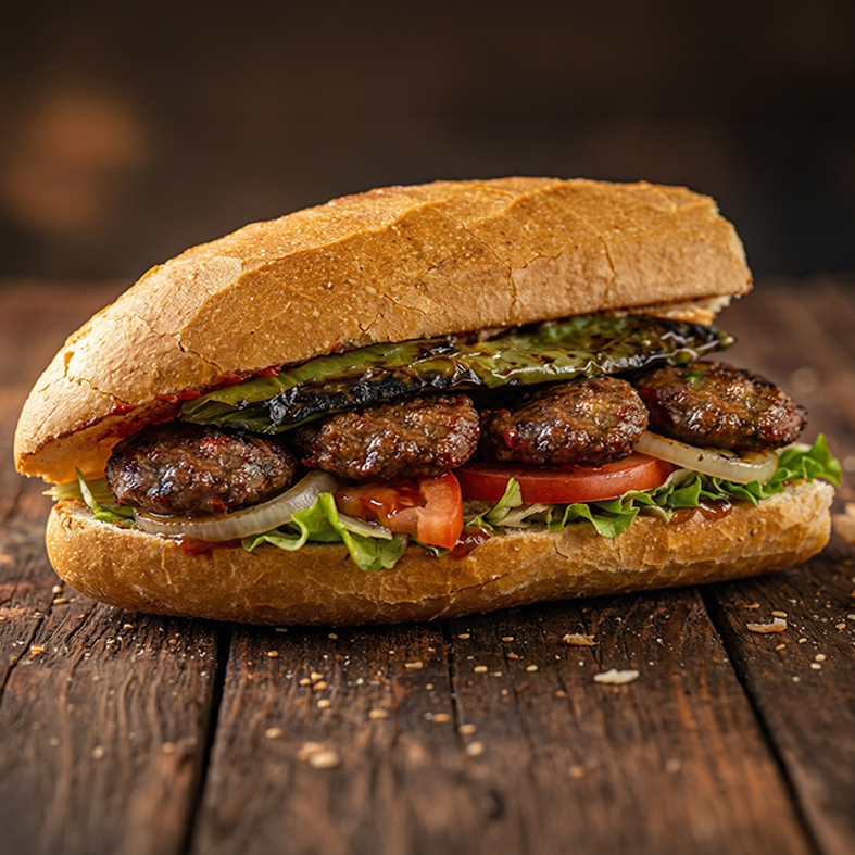 Özel ekmeği içine; Köfte, Garnitür, Turşu, mayonez, Özel sos ve içeceği ile ekonomik menüler.