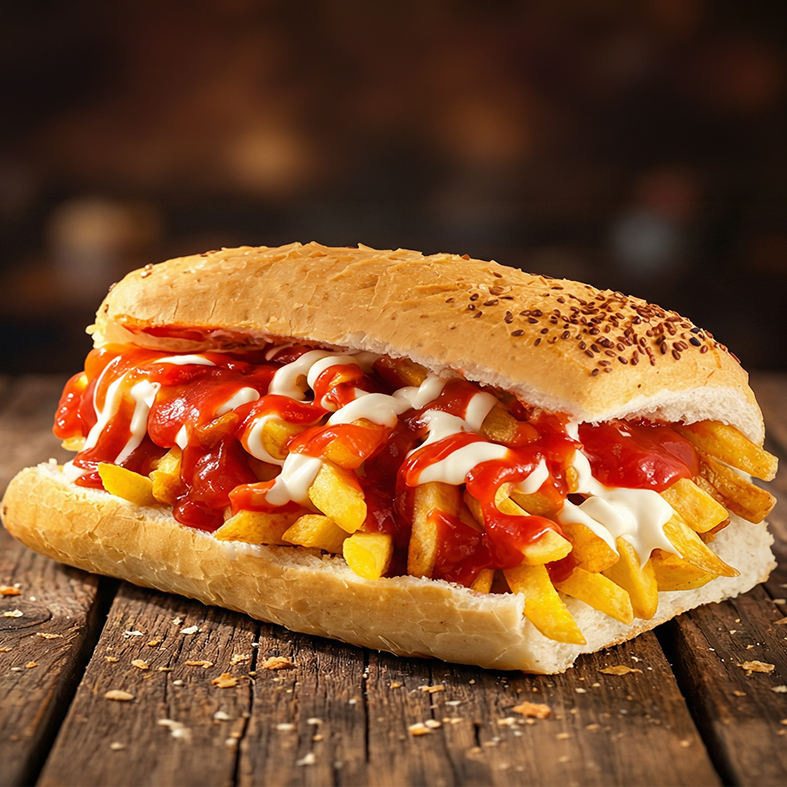 Özel ekmeği içine; Sosis, Garnitür, mayonez, Özel sos ve içeceği ile ekonomik menüler.